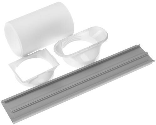 Hot air duct, plug, washable air filter, window adapter, control panel, chassis