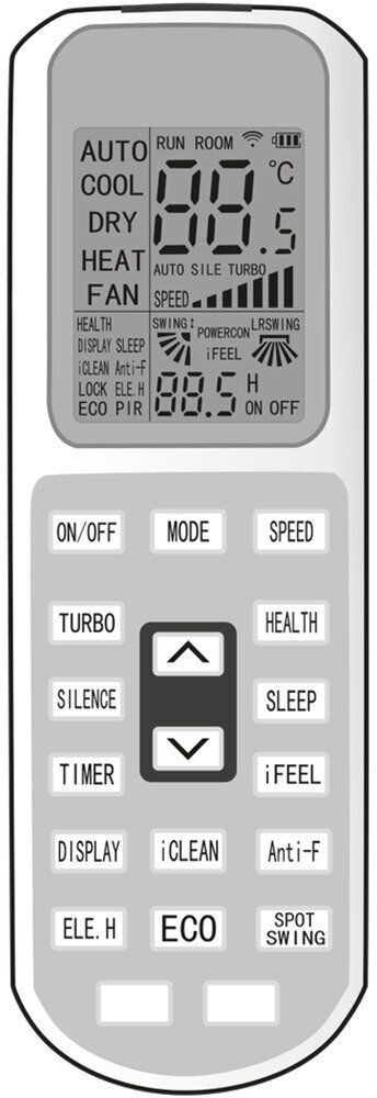 Follow me, automatic temperature maintenance, auto restart, self-diagnosis, indoor unit self-cleaning, anti-ice system, anti-mold system