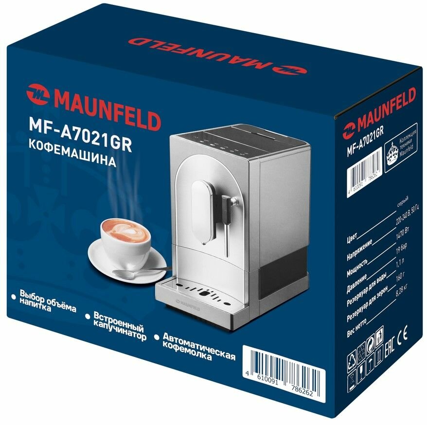 Device type: coffee machine, type: automatic, type of coffee used: beans, cappuccino preparation: manual, drink type: Americano, cappuccino, latte, macchiato, pump pressure: 19 bar, built-in coffee grinder, adjustable