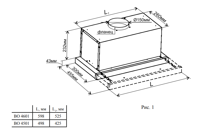 Form factor: built-in, width: 50 cm, depth: 30 cm, operating modes: drain / circulation, maximum productivity: 600 m³/hour, power consumption: 185 W