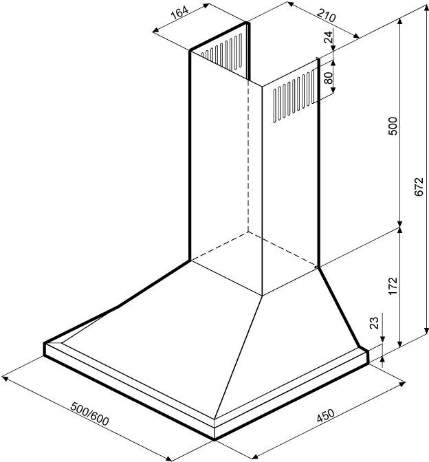 Form factor: dome, width: 60 cm, installation location: Wall-mounted, maximum productivity: 550 m³/hour, filter: Carbon, control type: mechanical, lighting type: incandescent lamp