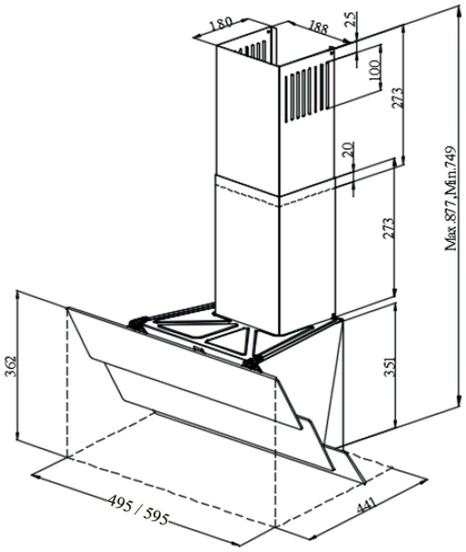 Form factor: inclined, width: 59.50 cm, depth: 41.20 cm, operating modes: drain / circulation, maximum productivity: 1400 m³/hour, installation type: wall-mounted, filter: grease + carbon, control type: electronic, type o