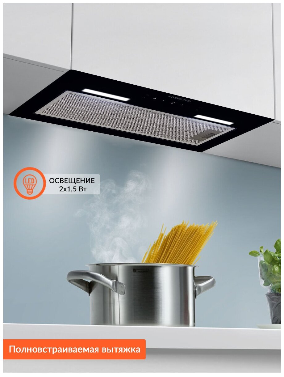 Form factor: built-in, width: 52 cm, depth: 24.80 cm, operating modes: drain / circulation, installation location: in a cabinet, maximum productivity: 900 m³/hour, installation type: wall-mounted, filter: grease, control type: e