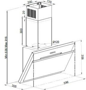 Wall-mounted inclined hood LuxDorf 5611LX Bildstil 60 cm, 3 speeds, exhaust/circulation, backlight, mechanical control, black glass