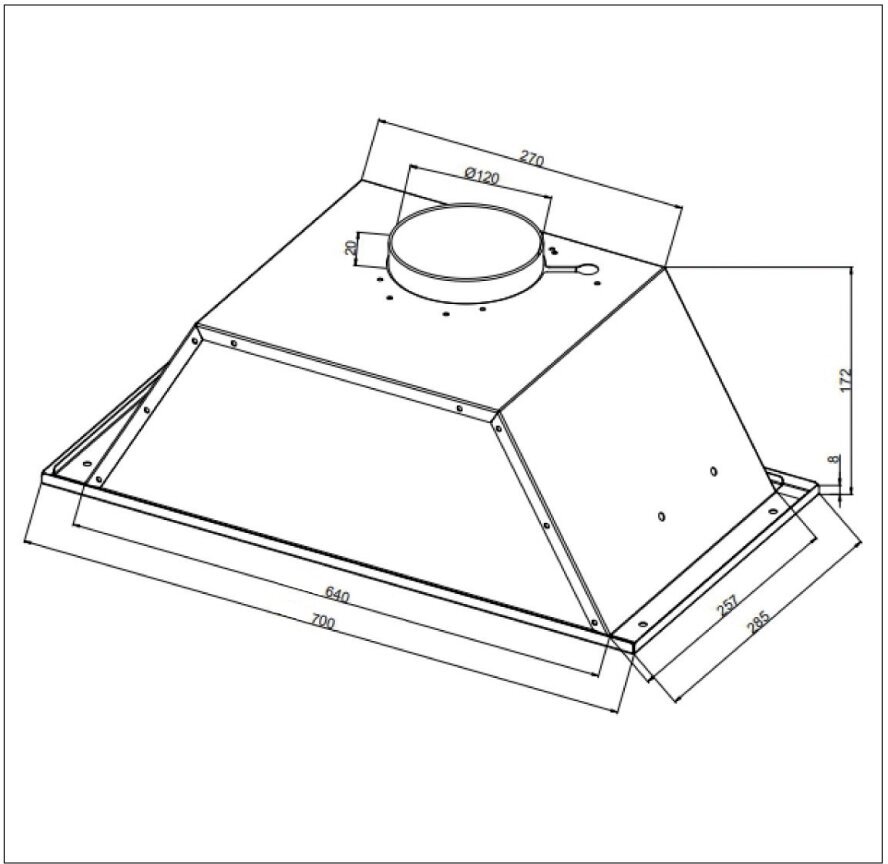 Form factor: built-in, width: 70 cm, depth: 28.50 cm, operating modes: drain / circulation, installation location: in a cabinet, maximum productivity: 550 m³/hour, installation type: wall-mounted, filter: grease, control type: m