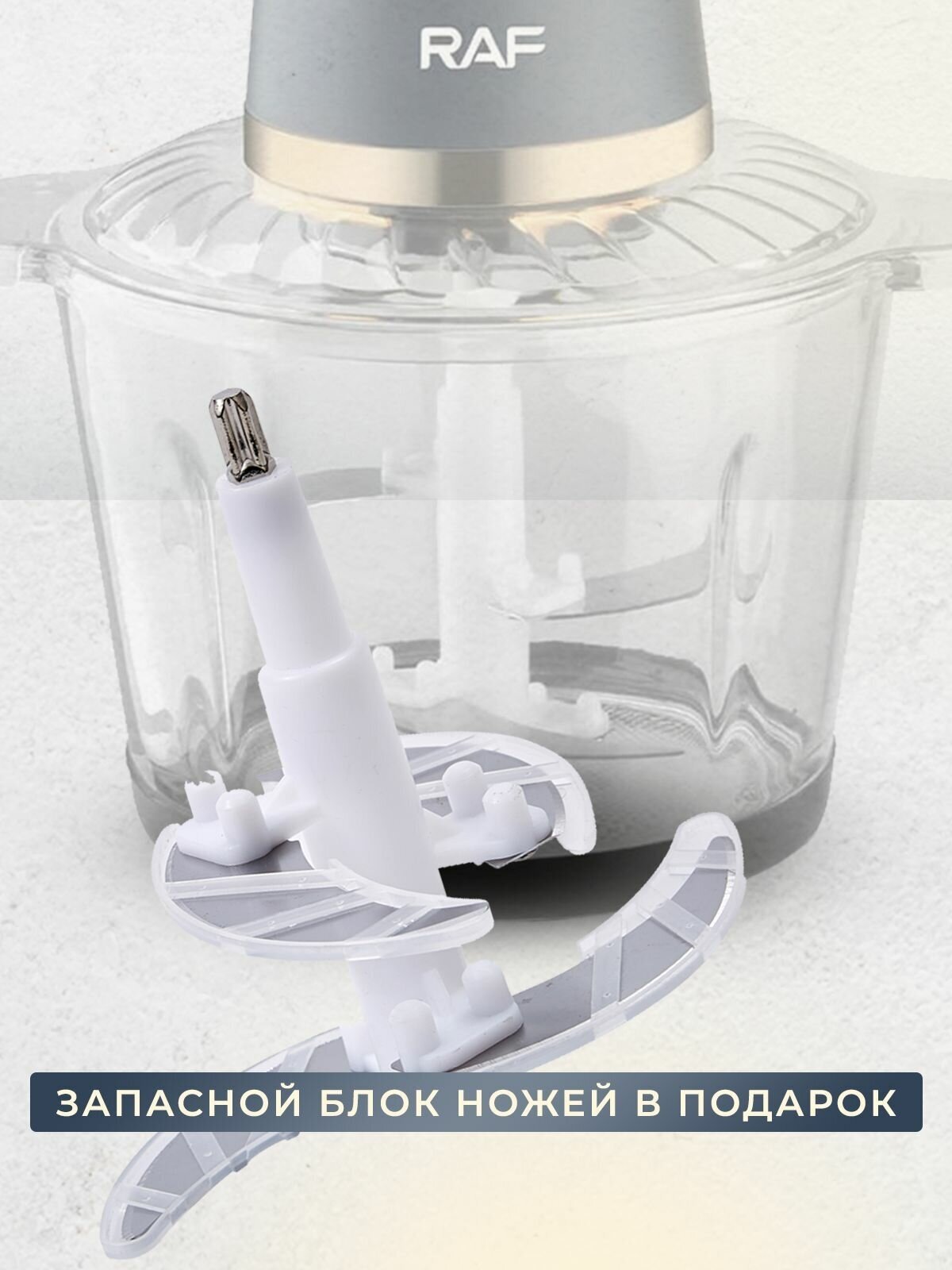 Electric chopper - RAF meat grinder. Power 1000 W. Thick glass bowl 3 l. Spare knife block as a gift