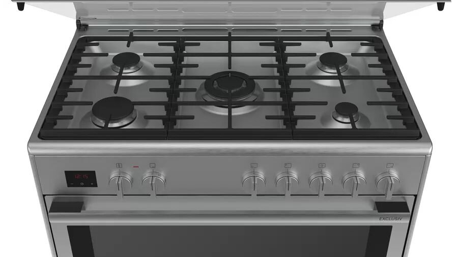Type: combined, oven type: electric, hob type: gas, work surface material: stainless steel. steel, width: 89.80 cm, depth: 60 cm, number of burners: 5, electric ignition: hob + oven