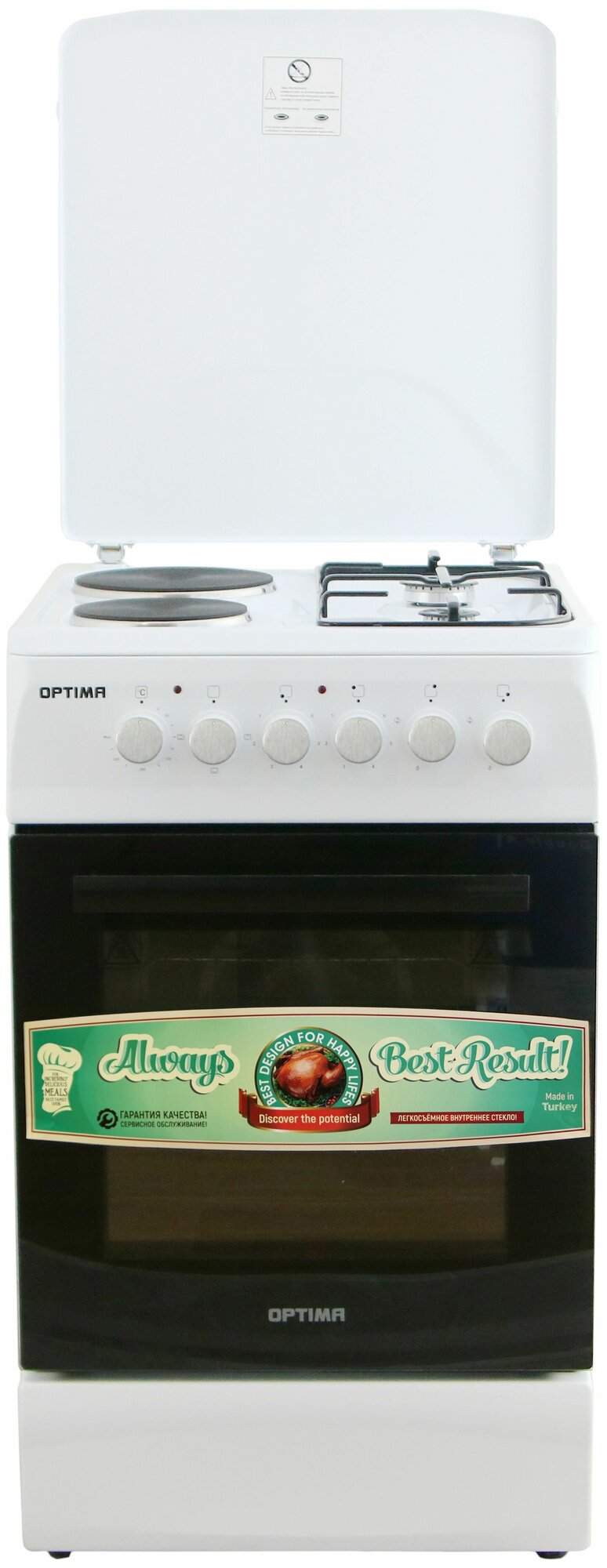 Gas-electric OPTIMA CS-5621 white 2 gas+2 electric, 50x60 cm