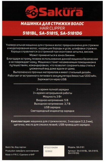 Purpose: for beard and mustache, for cutting hair, for body, type: trimmer, power: USB, battery type: own battery, minimum cutting length: 1 mm, blade material: stainless steel, adjustment method