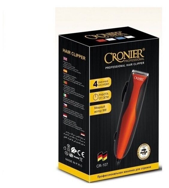Fast charging, waterproof body, rounded blades, charging indicator, rotary motor, LED Display charge and oil level, Charging base, Lithium battery 2500 mAh, Power 7 W, Professional attachments 6pcs
