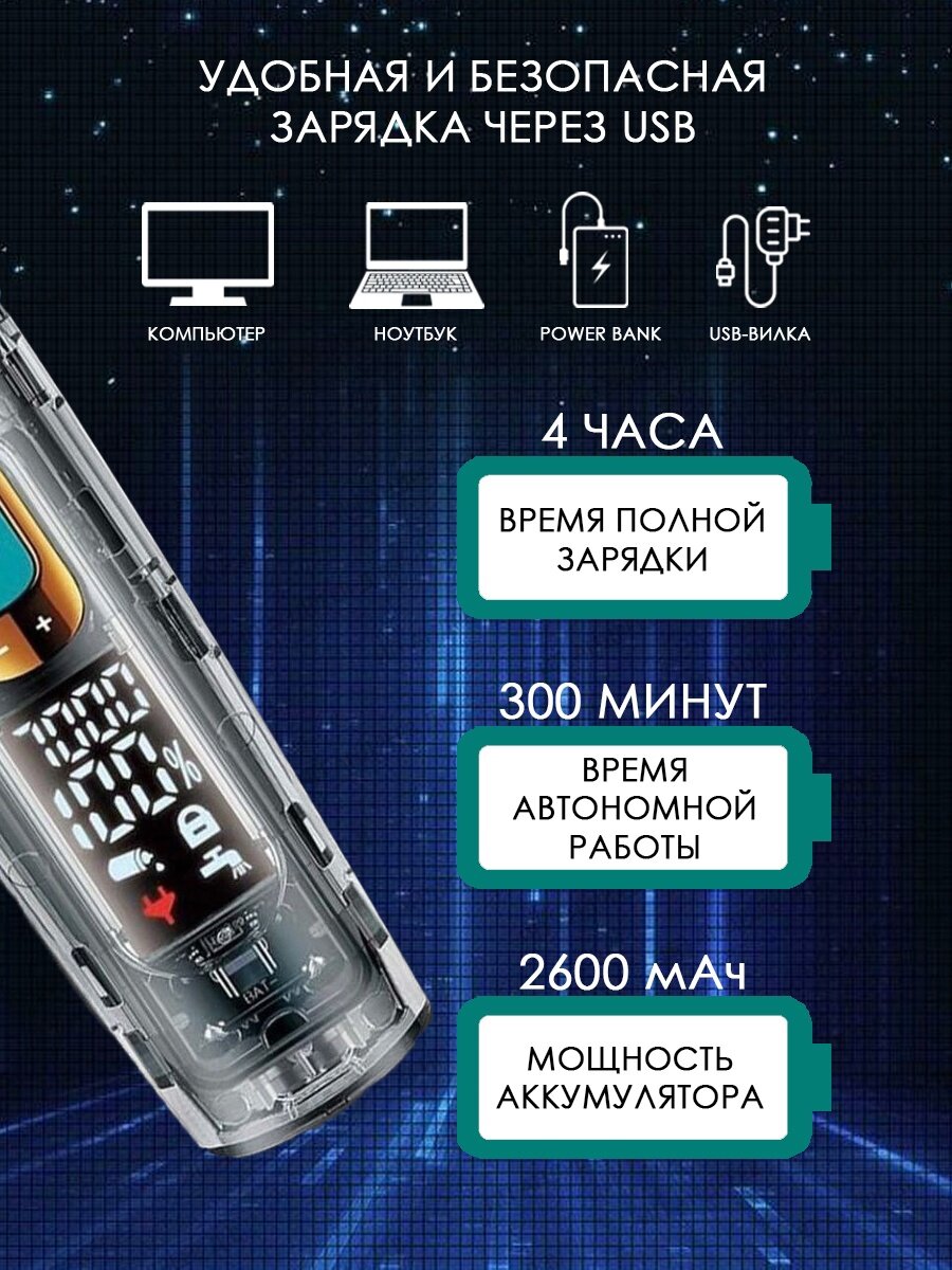 Fast charging, waterproof housing, rounded blades, charging indicator, rotary motor, touch screen