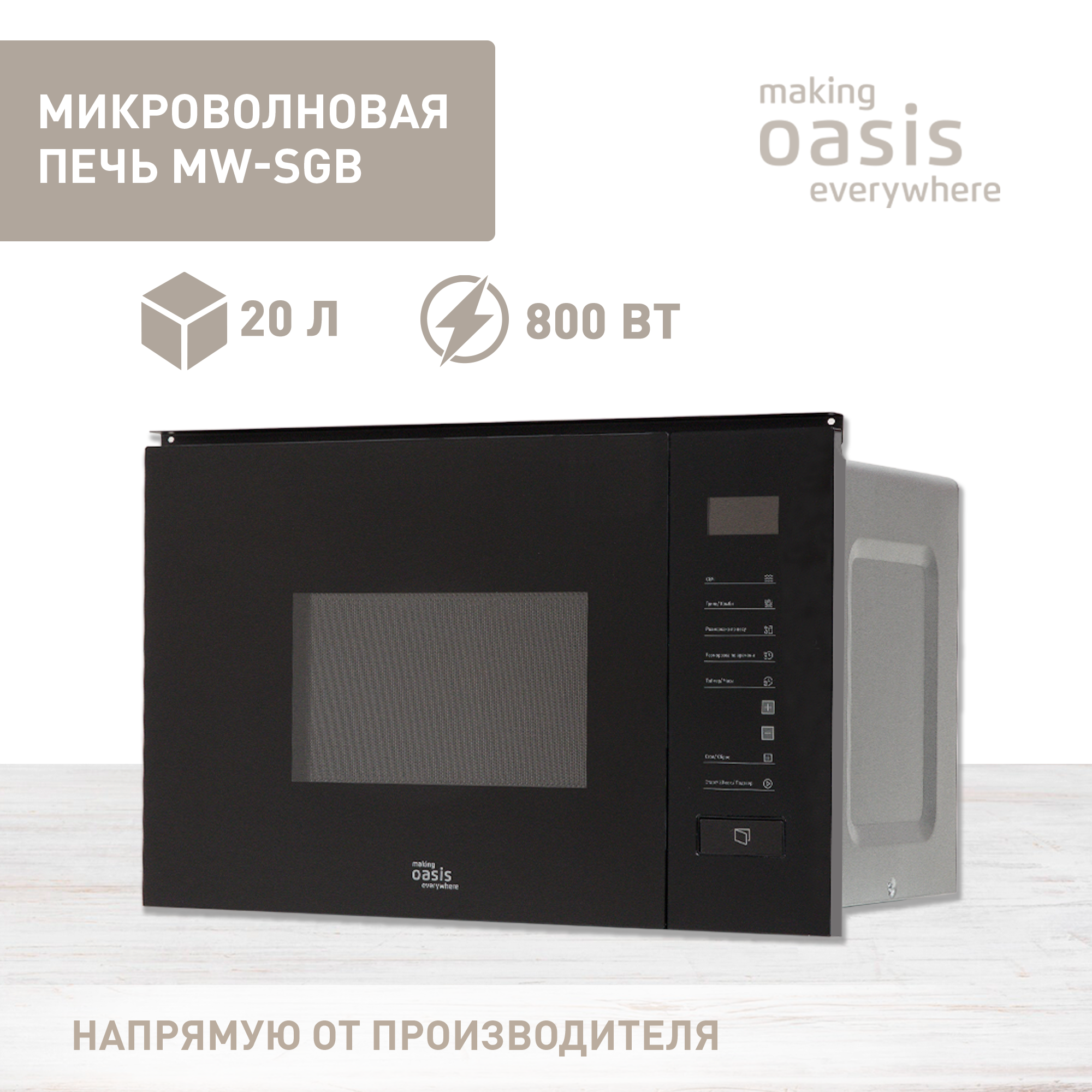Location: built-in, volume: 20 l, switches: touch, microwave power: 800 W, interior chamber coating: enamel, width: 59.40 cm, depth: 38.20 cm, height: 33.40 cm, operating modes: grill, microwave + grill, defrost