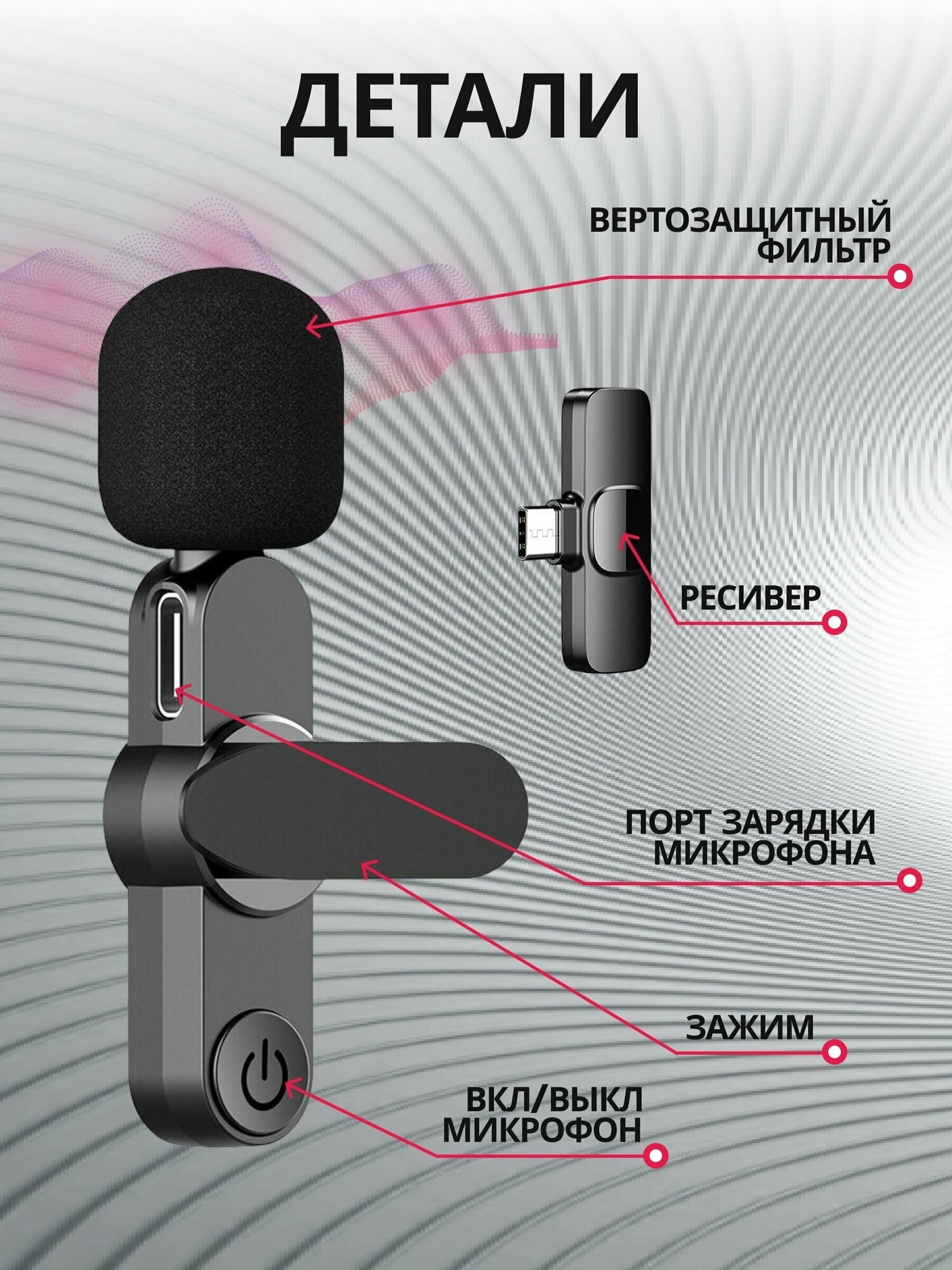 Purpose: for a mobile device, design: lapel clip, connector: USB Type-C