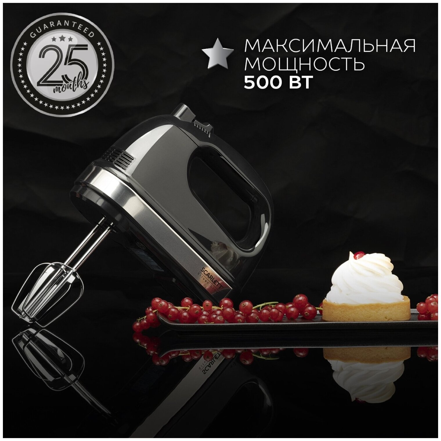 Type: manual, power: 500 W, attachments: whisk, dough hooks, body material: plastic, design features: attachment release button, number of speeds: 2, power cord length: 1.20 m