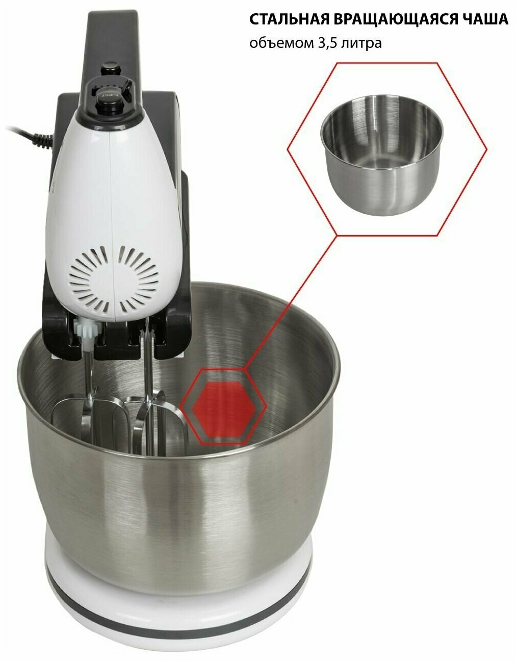 Type: stationary, power: 350 W, bowl material: stainless steel, bowl volume: 3.50 l, body material: metal, plastic, PlasticMetal, metal, plastic, additional modes: turbo mode, turbo, number of speeds: 5