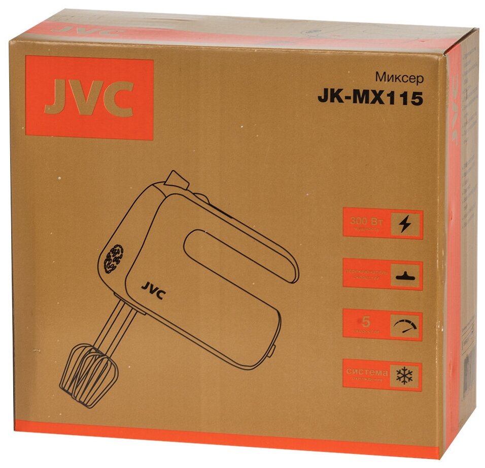 Type: manual, power: 300 W, attachments: whisk, hooks for kneading dough, body material: plastic, design features: attachment release button, number of speeds: 5