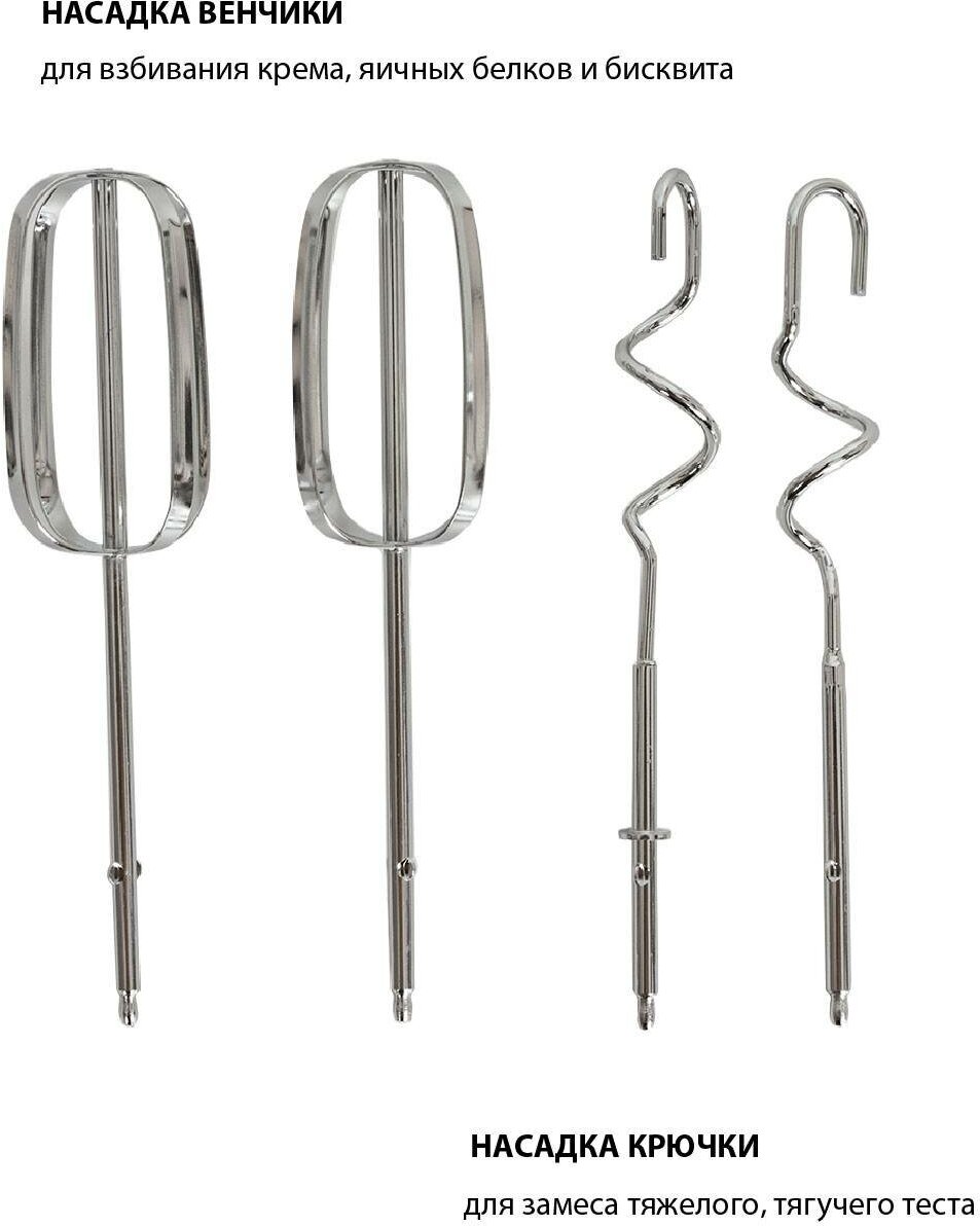 Type: manual, power: 350 W, attachments: whisk, hooks for kneading dough, whisk, hooks for kneading dough, body material: metal, plastic, metal, plastic, number of speeds: 5, length set