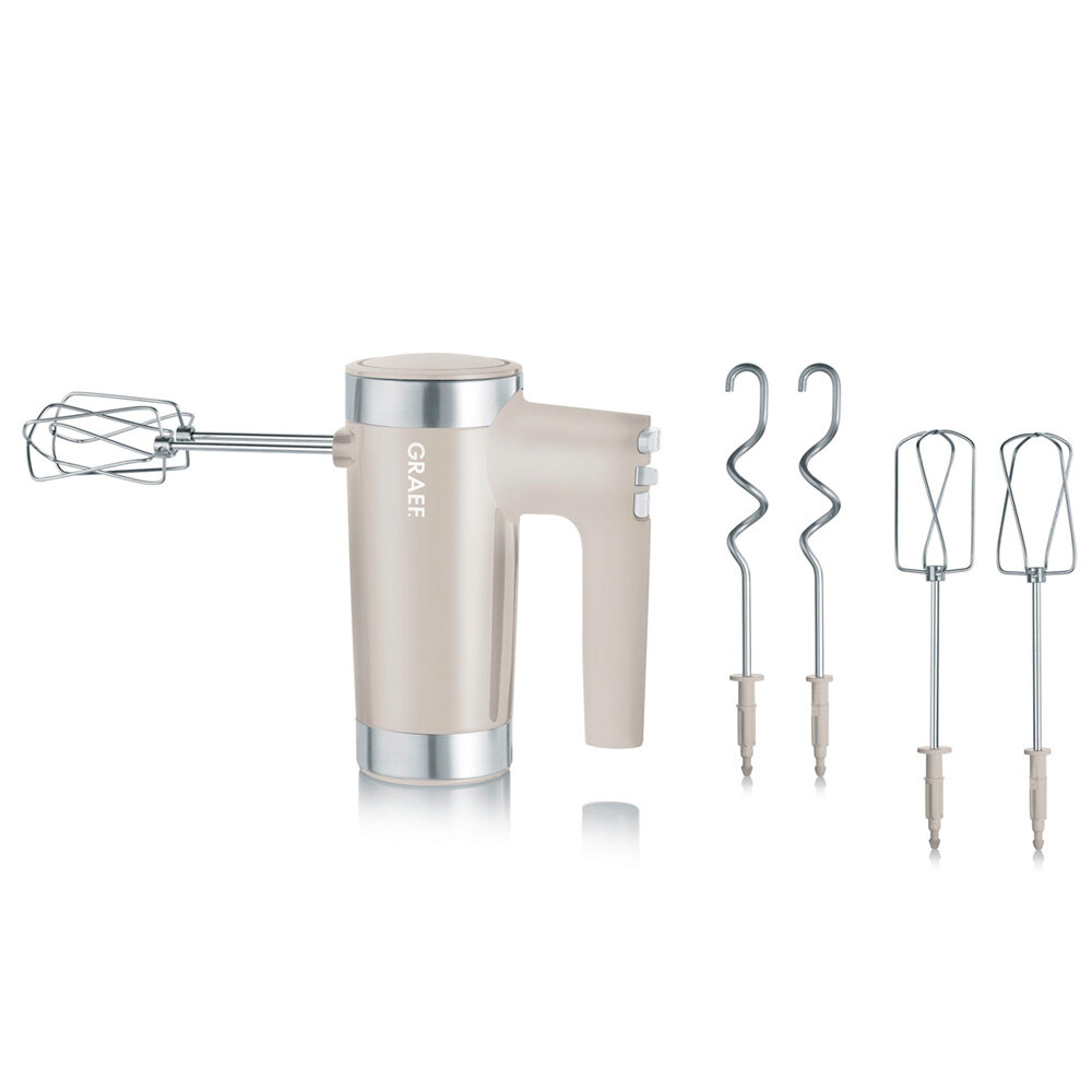 Type: manual, power: 600 W, attachments: whipping whisk, dough hooks, 2 extra-long kneading hooks and 4 extended mixing hooks, whipping whisk, dough hooks, long