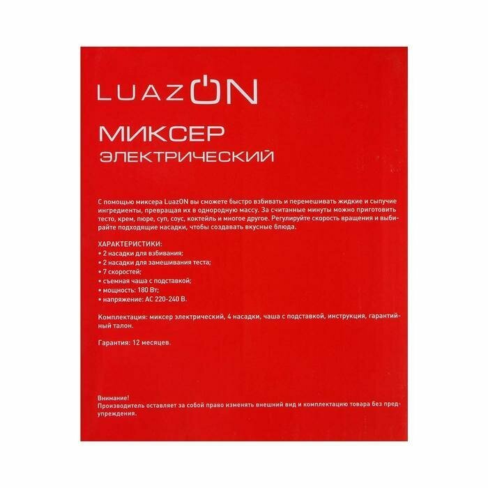 Luazon Home LuazON LMR-04, manual, 180 W, 7 speeds, 4 nozzles, white-black