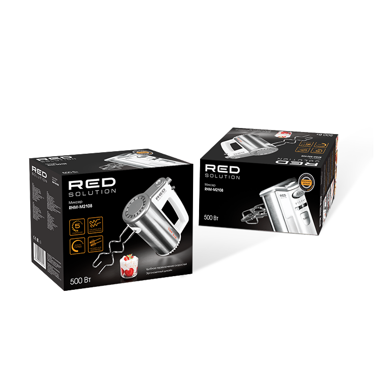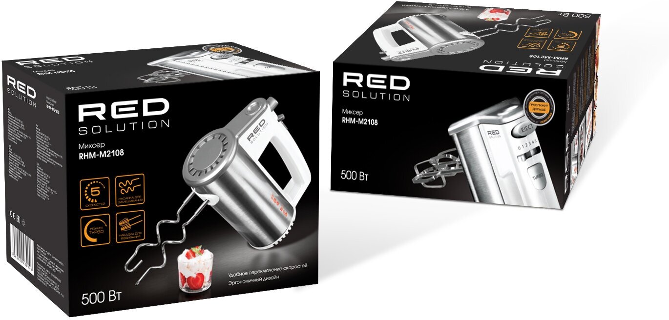 Type: manual, power: 500 W, attachments: whisk for whipping, hooks for kneading dough, body material: metal, plastic, additional modes: turbo mode, design features: attachment release button, number