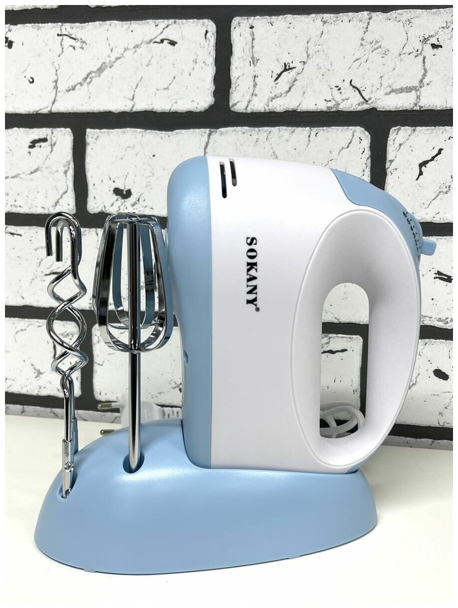 Type: manual, power: 300 W, attachments: whisk for whipping, hooks for kneading dough, body material: metal, plastic, design features: attachment release button, device for winding cord, accessories