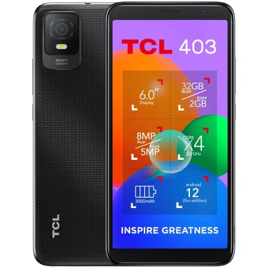 Screen diagonal: 6", number of main cameras: 1, memory: 32 GB, RAM: 2 GB, battery capacity: 3000 mAh, screen resolution: 960×480, screen refresh rate: 60, memory card slot