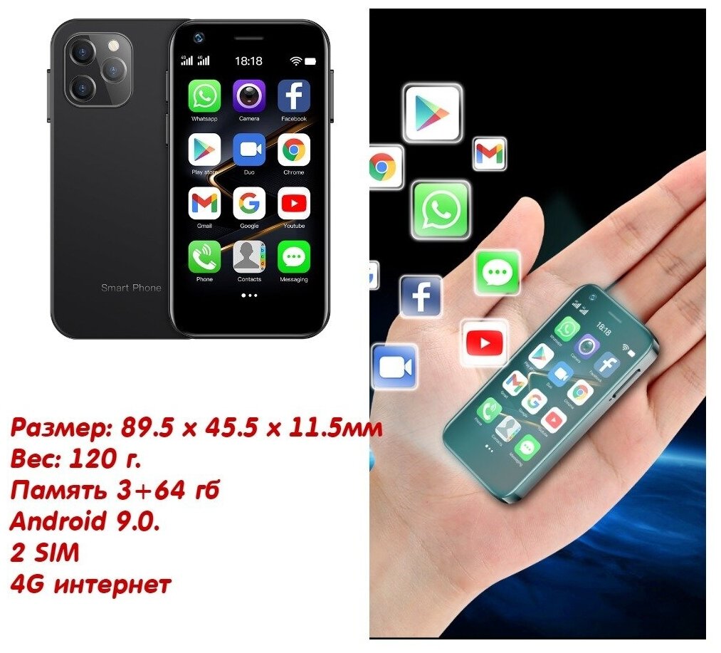 Screen diagonal: 3", memory: 32 GB, 64 GB, RAM: 3 GB, battery capacity: 1220 mAh, screen resolution: 854×480, memory card slot