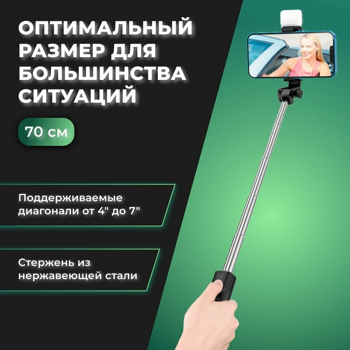 Smartphone selfie stick tripod with backlight