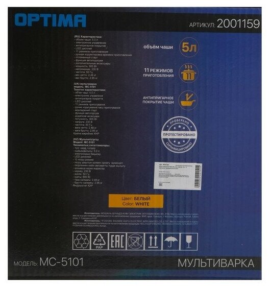 OPTIMA MC-5101, 900 W, 5 l, 11 programs, silver/white
