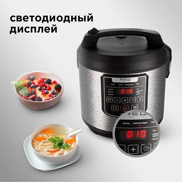 Non-stick coating of the bowl, display, cooking time adjustment, temperature adjustment