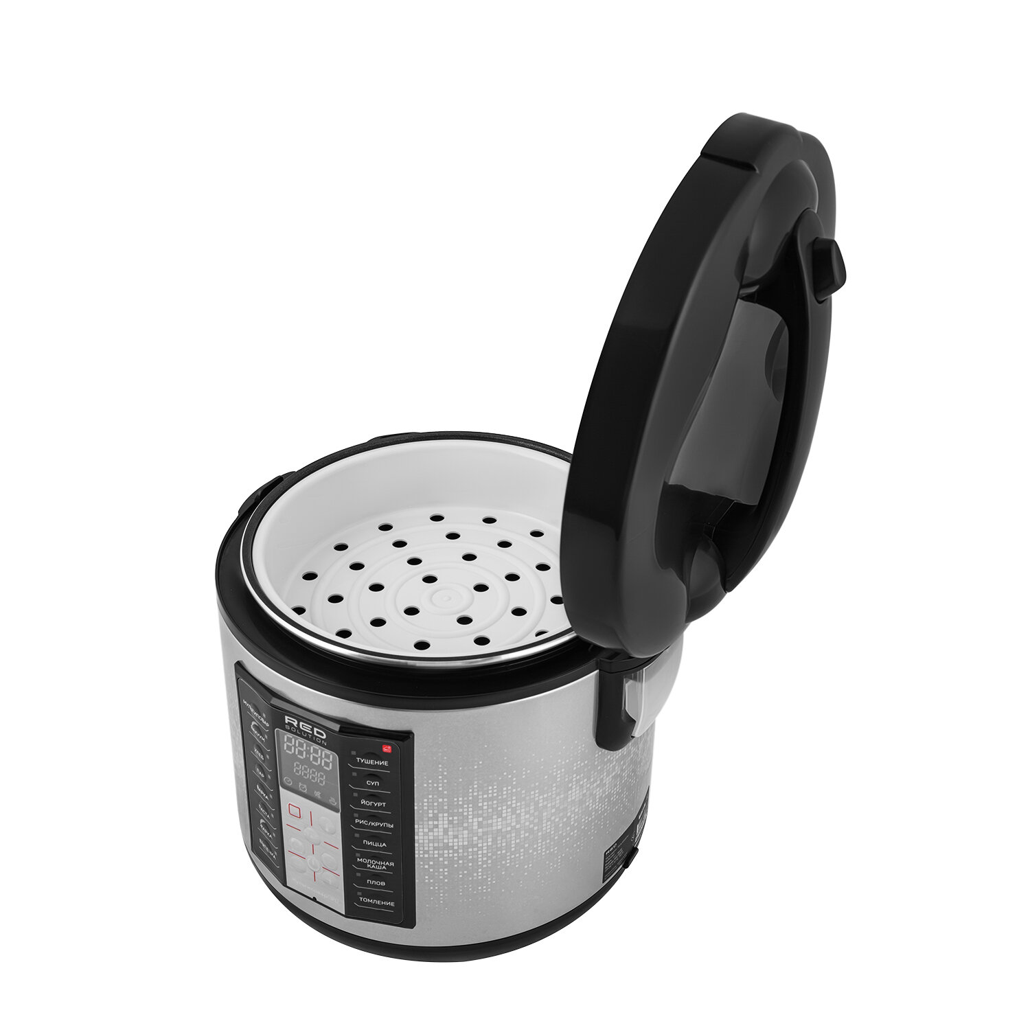 Type: multicooker, volume: 5 l, cooking programs: jam, boiling, baking, frying, yogurt, cereal, milk porridge, multicooker, pasteurization, pizza, pilaf, steaming, soup, cottage cheese, number of automatic programs: