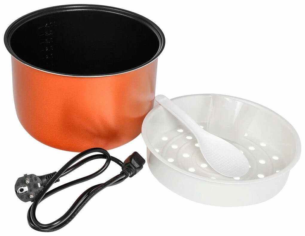 Type: multicooker, volume: 5 l, cooking programs: baking, frying, roasting, yogurt, cereal, milk porridge, pasta, dumplings, pizza, pilaf, soup, stewing, jellied meat, steaming, casserole, heating, your own recipe, sauté, sterilized