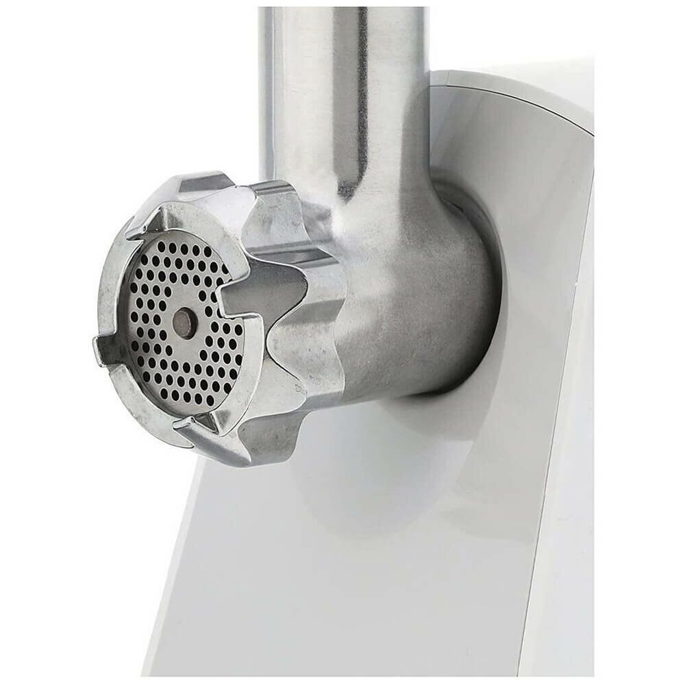 Rated power: 200 W, attachments: disk for minced meat, body material: plastic, reverse system, productivity: 1.20 kg/min, features: overload protection, rubberized feet, self-sharpening knife, pusher