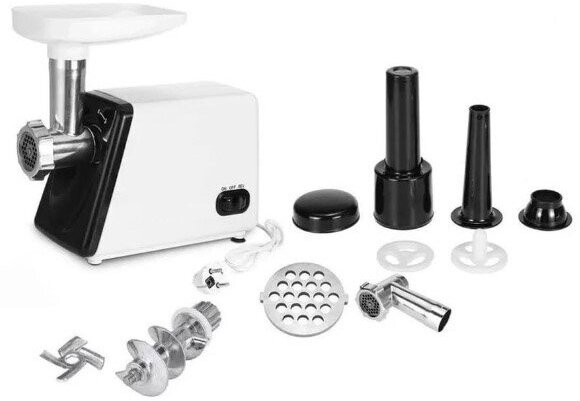 Nozzles: disk for minced meat, nozzle for kebbe, nozzle for preparing sausages, body material: plastic, reverse system, features: overload protection, dishwasher safe, rubberized feet, quantity