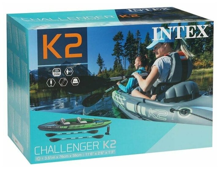 Challenger K2, 2-seater, 351 x 76 x 38 cm, aluminum oars 213 cm, hand pump, 2 seats, up to 160 kg, 68306NP INTEX