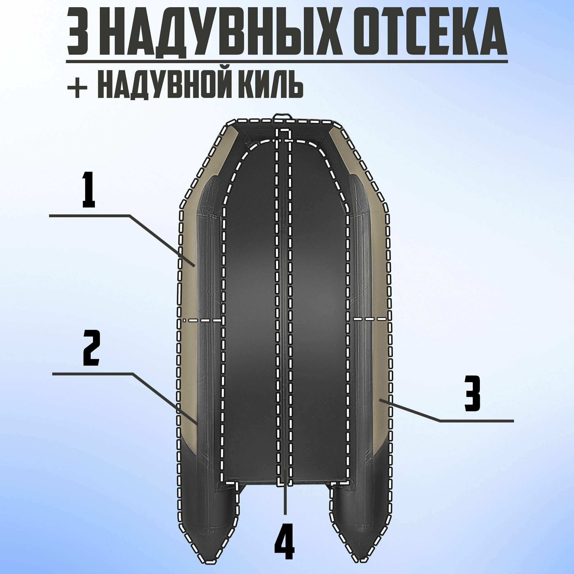 PVC Bronya 340 SK, with motor, keel, three-seater, with reinforcement, hull + keel included