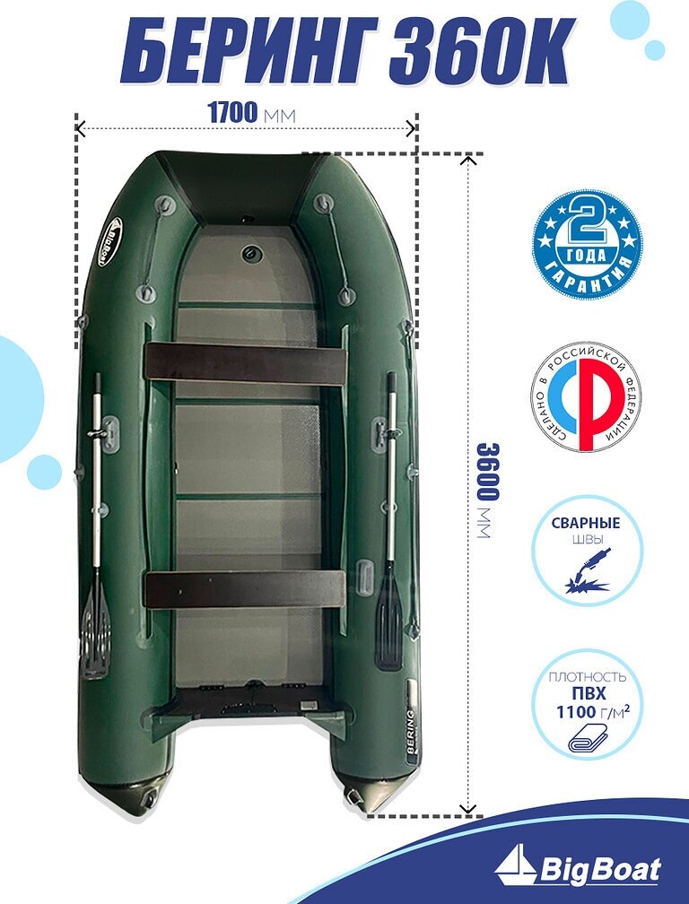Inflatable, motor, PVC keel Bering Bering 360K half-book