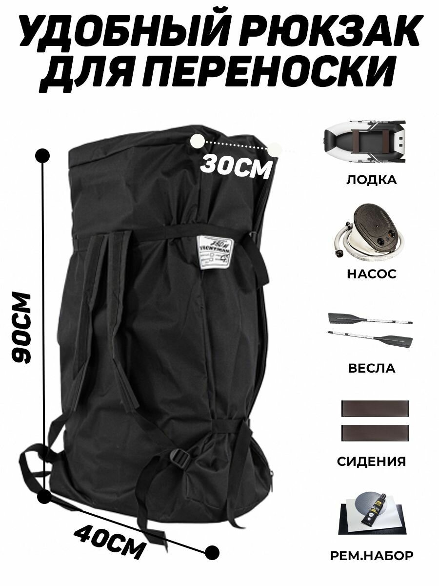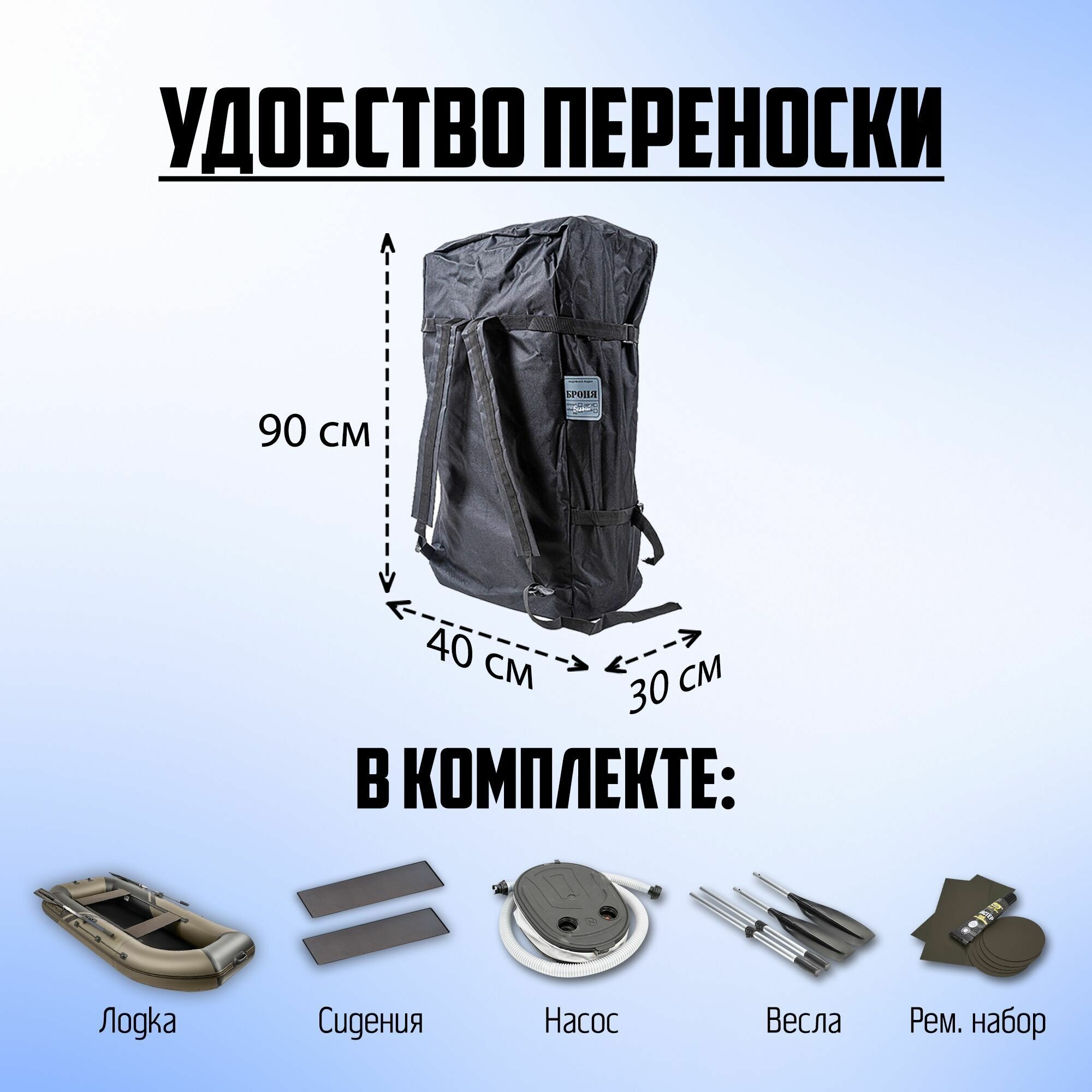 Boat, 2 seats, 2 dismountable oars, foot pump 5 liters, rem. set, backpack, passport