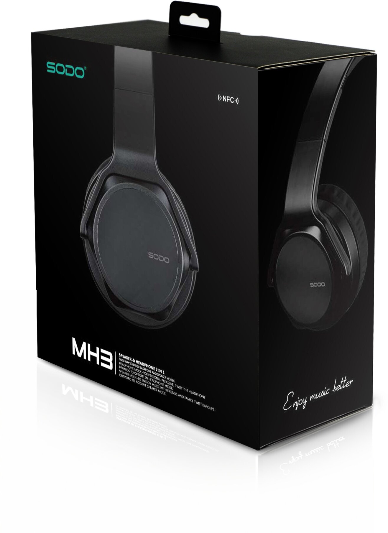 Headphones/speaker SODO MH3, Bluetooth + AUX, 400 mAh, black, NFC, TF, FM