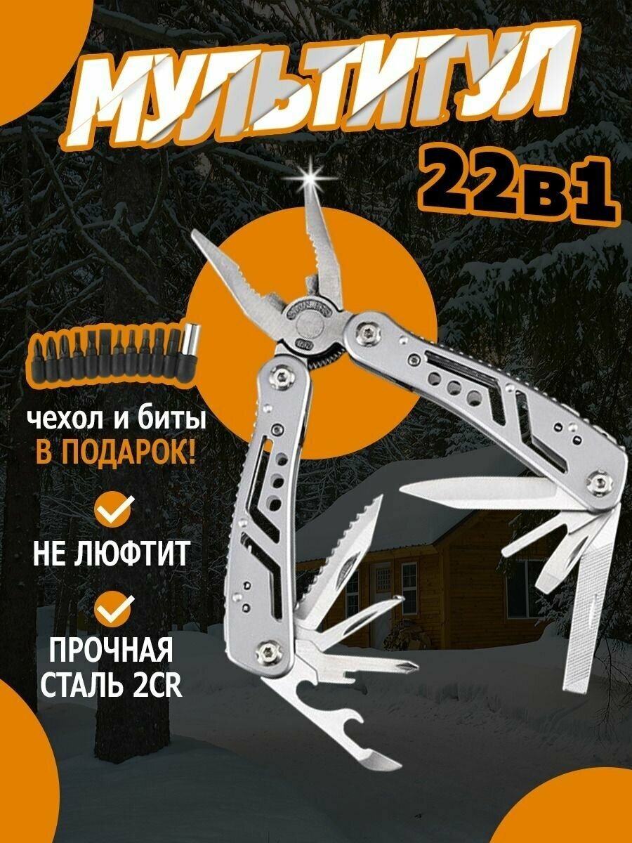 Multi-tool - universal men's accessory of a hiking survival kit, for car, bicycle, travel, tourism, hunting and fishing, camping, rescue, army, tactical and military equipment
