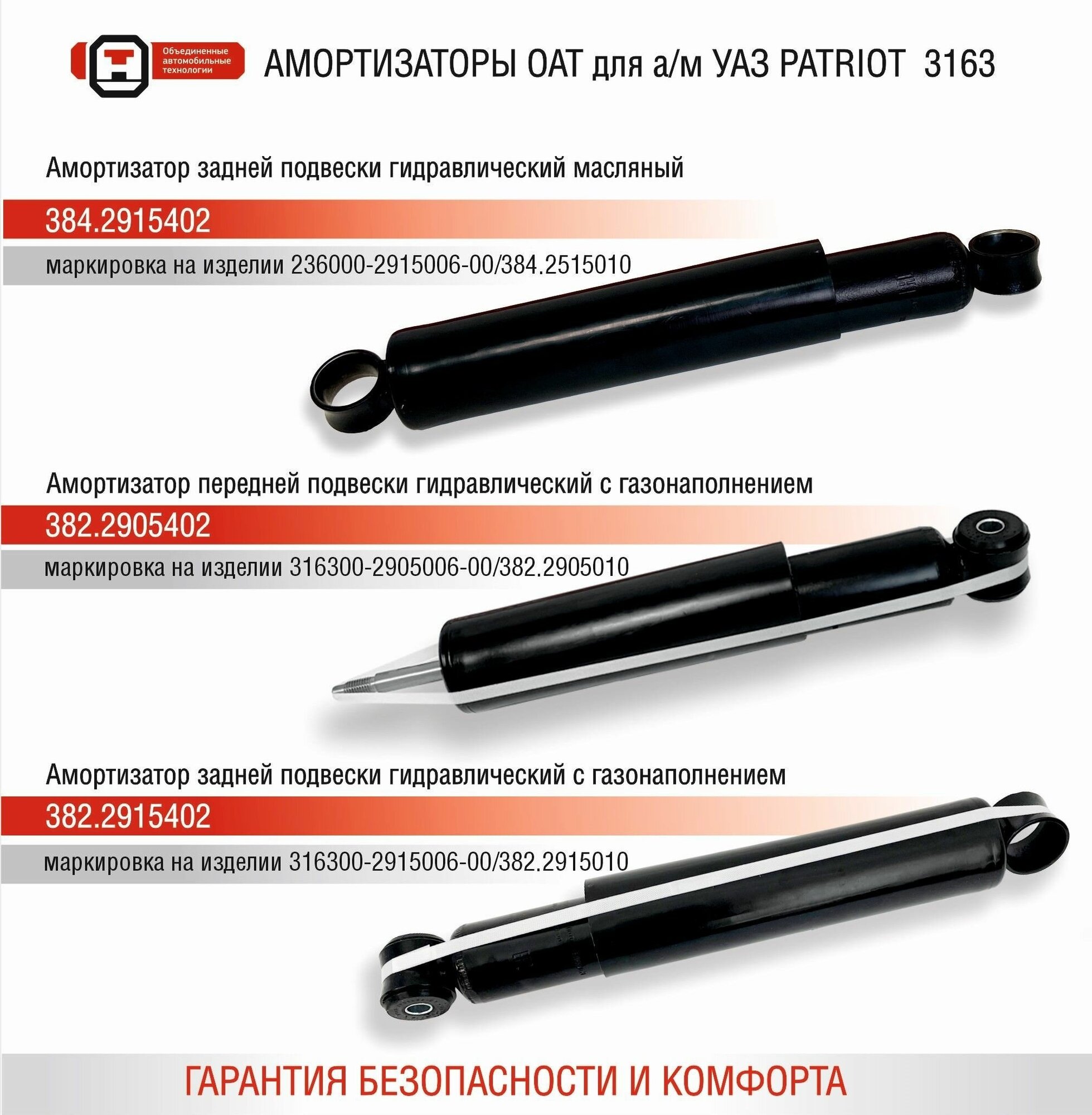 Car model: UAZ 2206, UAZ 3153, UAZ 3159, UAZ 3303, UAZ 3741, UAZ 3909, UAZ Hunter, UAZ-3160, installation axle: rear left, working medium: oil, corresponding OE codes: UAZ 2360-00-2915006- 00