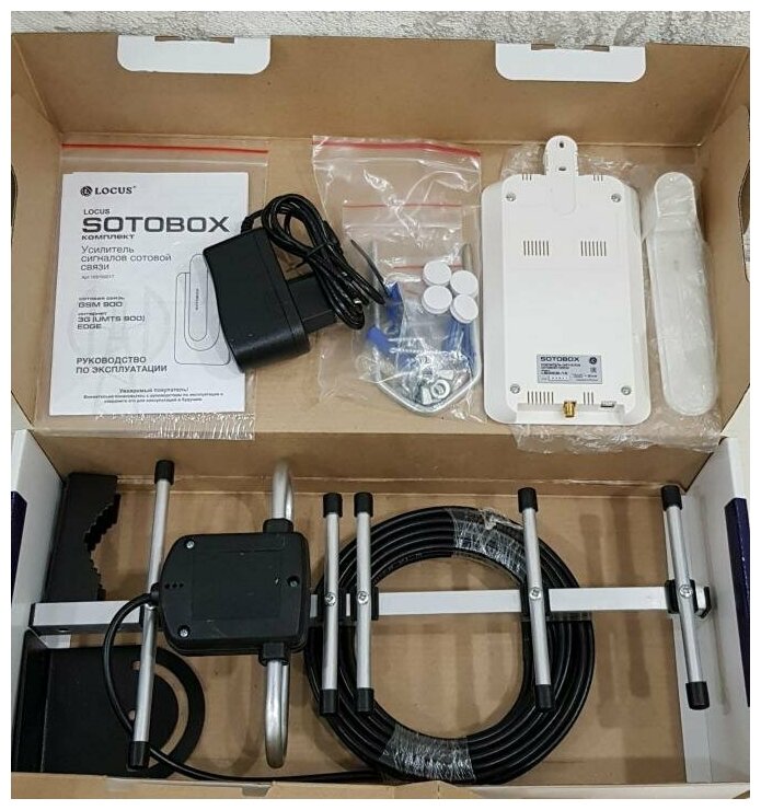 -Panel MiMo antenna 2х18dBi KAA18-1700/2700; -Two cable assemblies made of copper cable RG-6U 10 meters long for outdoor installation; -Two F-CRC9 adapters for connecting to a modem; -Wall bracket 0.3m for mounting the antenna; -University