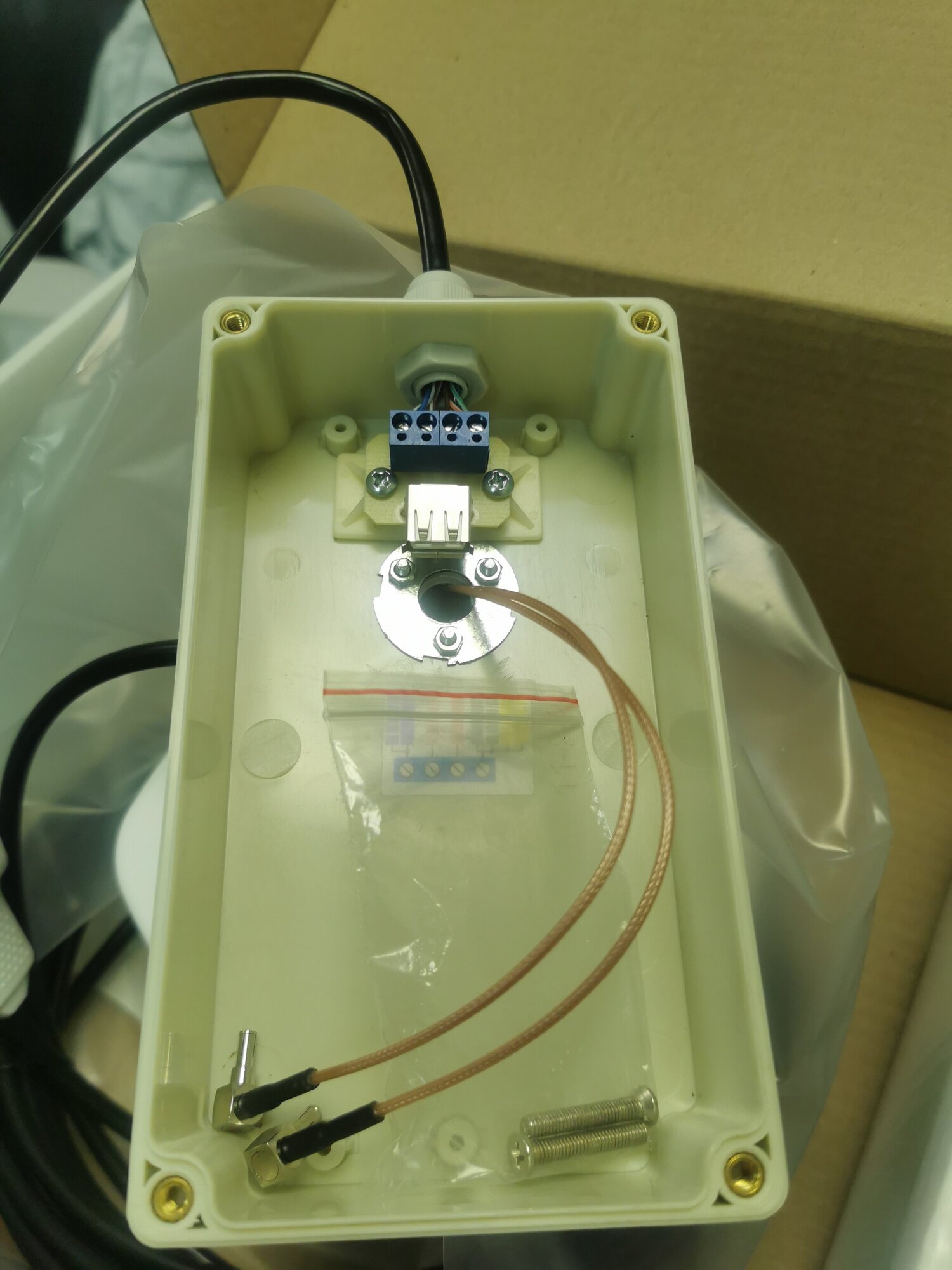 -Panel MiMo antenna 2х18dBi KAA18-1700/2700; -Two cable assemblies made of copper cable RG-6U 10 meters long for outdoor installation; -Two F-CRC9 adapters for connecting to a modem; -Wall bracket 0.3m for mounting the antenna; -University