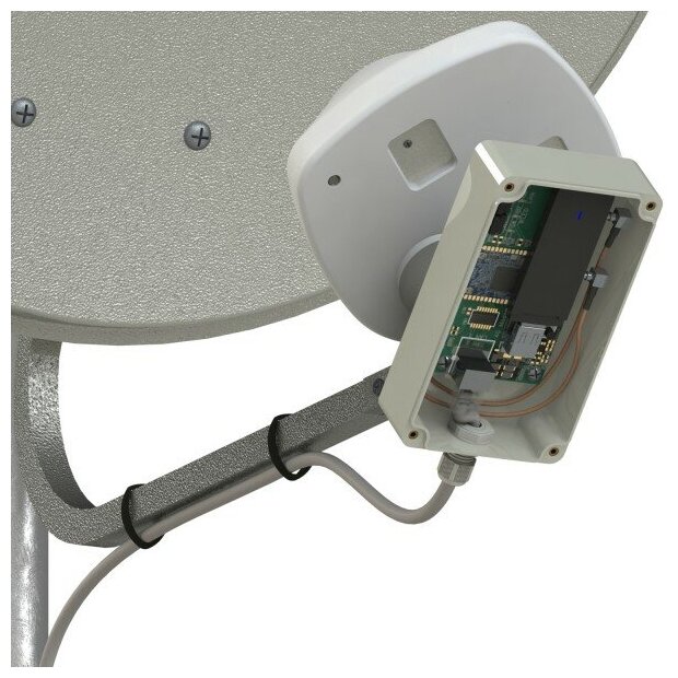 Connectors for connecting to a CRC9 modem, irradiator with a box for installing a modem, a 10-meter USB cable, a dish is not included, the illuminator's own amplification is 10dBi