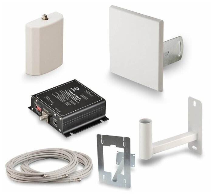 Communication standards: UMTS-2100, antenna type: indoor, outdoor, antenna polarization: vertical, antenna directivity: directional, repeater gain: 60 dB, antenna gain: 14 dBi, cable length: 10