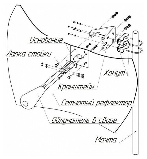 Operation manual passport, set of fasteners, MIMO feed 1700-2700 MHz, parabolic mesh reflector, packaging.