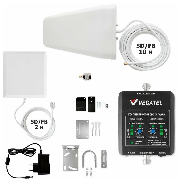 Amplifier of cellular communication 2G and Internet 3G, 4G, LTE dual-band. Kit VEGATEL VT-1800/3G house, LED. Action area up to 350 m2