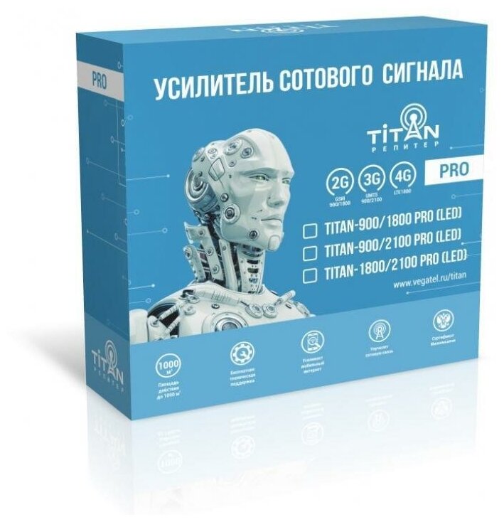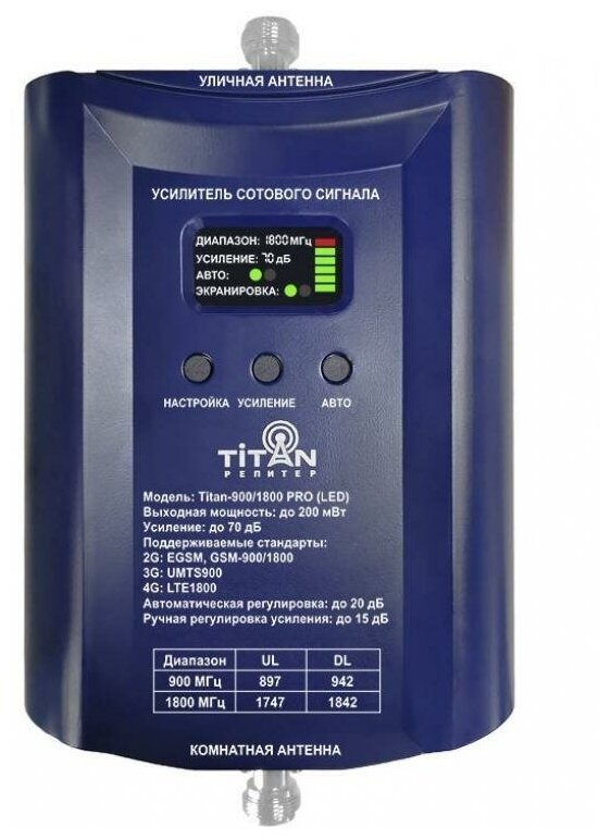 Amplifier of cellular communication 2G and Internet 3G, 4G, LTE dual-band. Titan-900/1800 PRO LED Kit