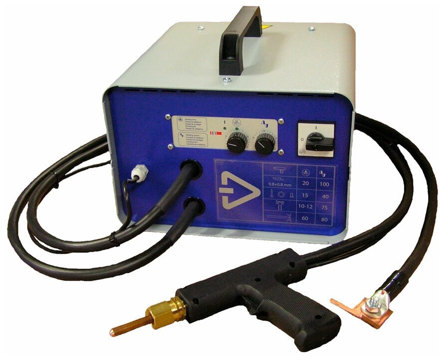 Type of welding: spot, type of power source: transformer, type of spot welding machine: spotter, maximum current: 3000 A, power: 2800 W, power at 50% duration: 2800 W, number of welding sides: one