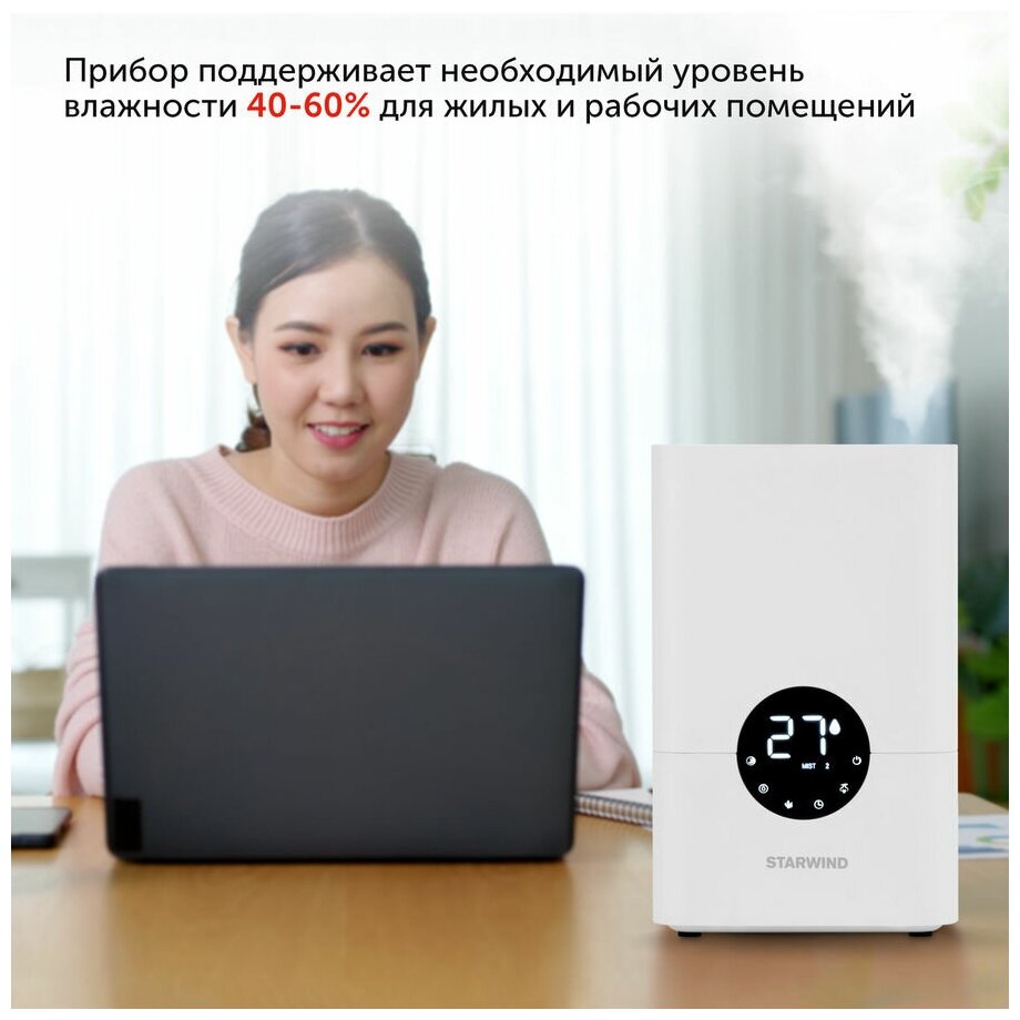 Type: air humidifier, humidifier type: ultrasonic, additional functions: aromatization, water tank volume: 4.50 l, features: humidifier, Top water fill. Capsule for aromatic oils.
